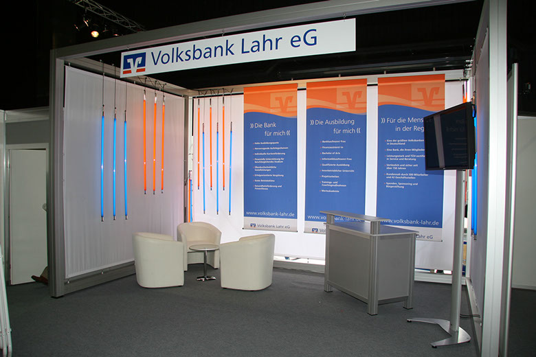 Es gibt viele Anlässe und Gelegenheiten, einen Messestand erfolgreich einzusetzen. Gewerbeausstellungen, Ausbildungsmessen, Produktpräsentationen und viele andere Veranstaltungen, bei denen Sie sich präsentieren wollen; sei es mit Produkten oder zur Imagebildung.